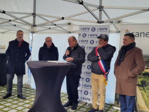 Bernard Leroy, président de l’Agglo Seine-Eure était aux côtés de Marc Crouzel, directeur des opérations du groupe Sanef et de Thierry Plouvier, vice-président du Département, en charge des mobilités pour inaugurer la nouvelle aire de covoiturage à Criquebeuf.