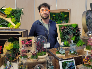 Celles qu’il exposait à Festiv’art ne proviennent pas de son jardin mais il signe les compositions. Il s’agit de fleurs stabilisées. La sève est remplacée par de la glycérine ce qui maintient la souplesse et la fraîcheur de ces végétaux.