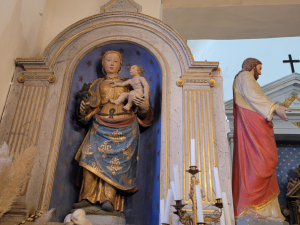 Ce n’était pourtant pas la messe dominicale, mais il y avait foule sur les bancs de la petite église St-Germain, à La Vacherie. Le retable force l’admiration de l’assistance. On s’arrête aussi devant la Vierge à l’enfant et les regards se tournent vers les vitraux, très simples, mais restaurés avec soin.