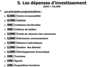 > Les dépenses d’investissements en 2026 devraient être de 34,1 M€