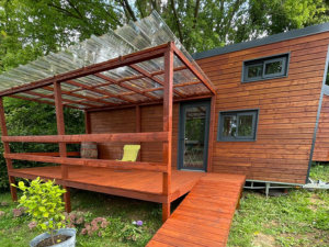 Sa tiny house, clé en main lui coûtera au total 95 000 €. Les charges sont minimes puisque les 18 m2 sont facilement chauffés et l’isolation à partir de produits naturels est de très bonne qualité. La tiny house est fabriquée à partir d’épicéa, issus de forêt gérée durablement et le mobilier (démontable) est en chêne pour ses qualités de robustesse. « La tiny house convient parfaitement aux personnes qui adhèrent à un mode de vie écologique : elle est fabriquée à partir d’éléments naturels et on ne garde que l’essentiel pour vivre » souligne Maxime.