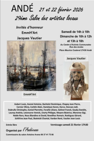 L’association l’Andéenne organise la 29ème édition du Salon des artistes locaux les 21 et 22 février 2026 à Andé, au centre d’activités communales.