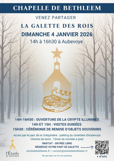 À l’occasion de l’Épiphanie, l’association L’Étoile de Bethléem vous invite à partager un moment convivial à la chapelle de Bethléem à Aubevoye, le dimanche 4 janvier 2026, de 14h à 16h30.