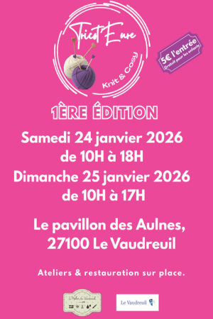 Les 24 et 25 janvier 2026, le pavillon des Aulnes au Vaudreuil vibrera au rythme de la laine et de la créativité avec la 1ère édition du festival Tricot’Eure.