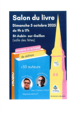 L’association « T’es pas cap ? » organise la 4ᵉ édition de son Salon du Livre, un rendez-vous incontournable pour les amoureux de littérature et de belles rencontres. Rendez-vous le 5 octobre 2025 à la salle des fêtes de Saint-Aubin-sur-Gaillon.
